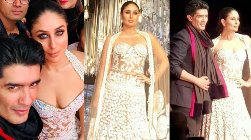 Original Resolution: 750x747 Kareena Kapoor Fashion Show Photos Kareena kapoor wore a plunging sheer choli with a heavily embellished lehenga at designer manish malhotra's singapore fashion show. 620x930 - After working with traditional techniques such as kashmiri embroidery, phulkari and chikankari, manish malhotra's latest project has him bringing together benarsi weaves and bandhini work.